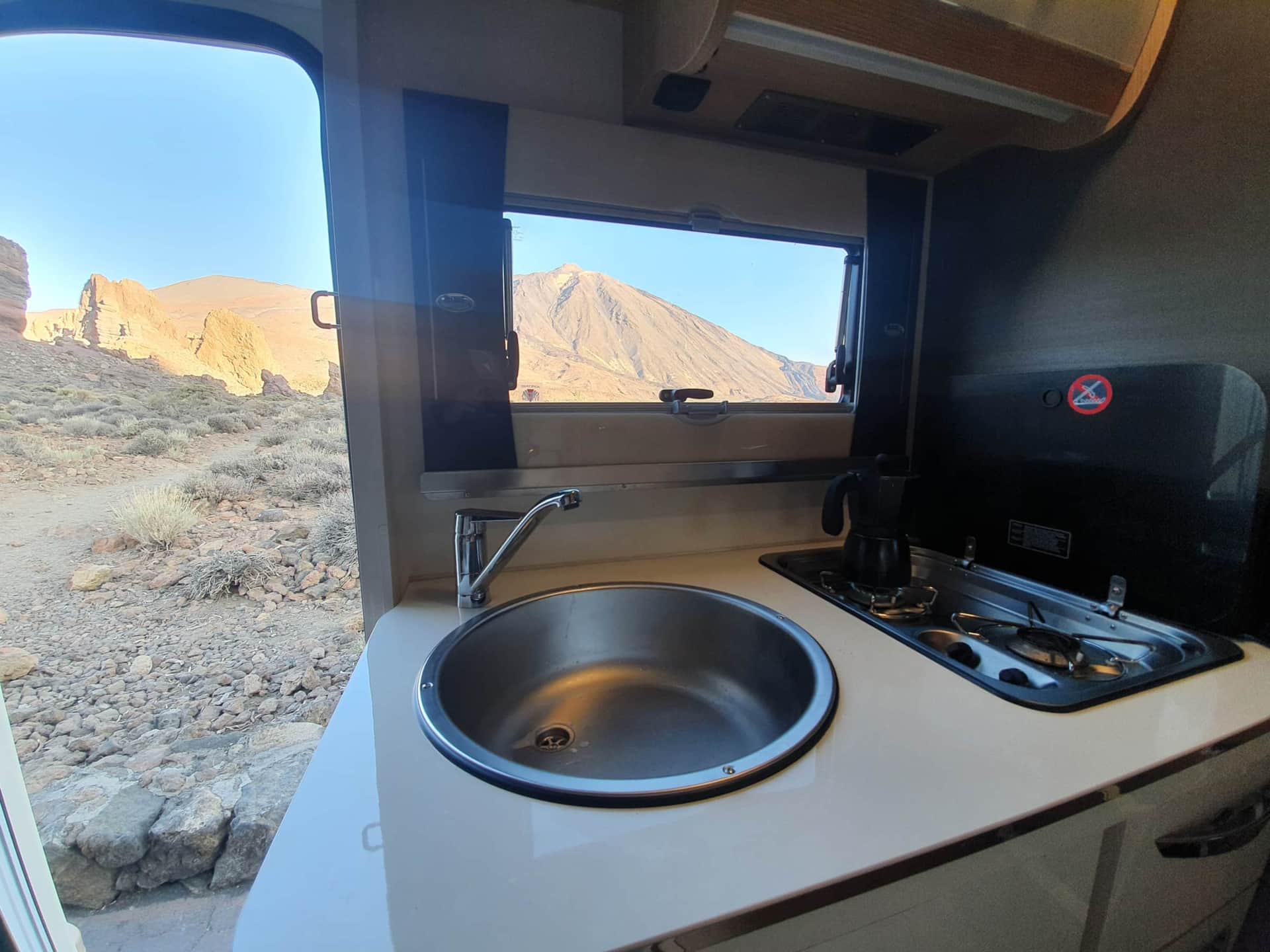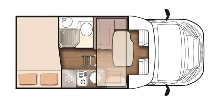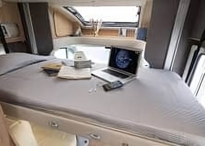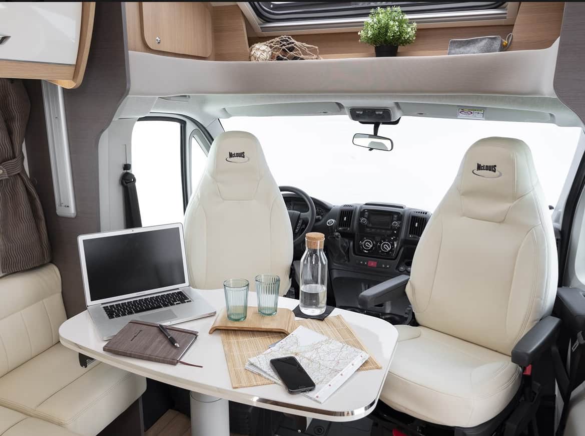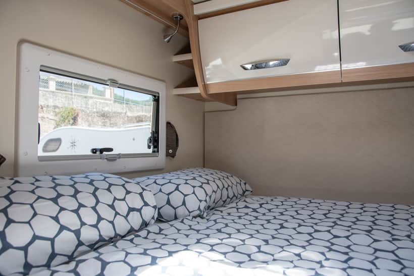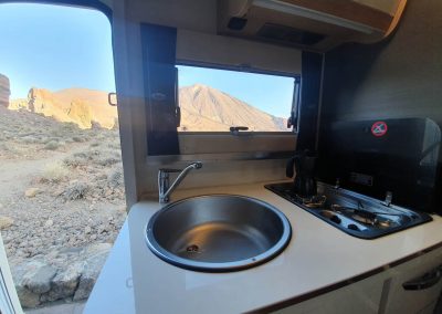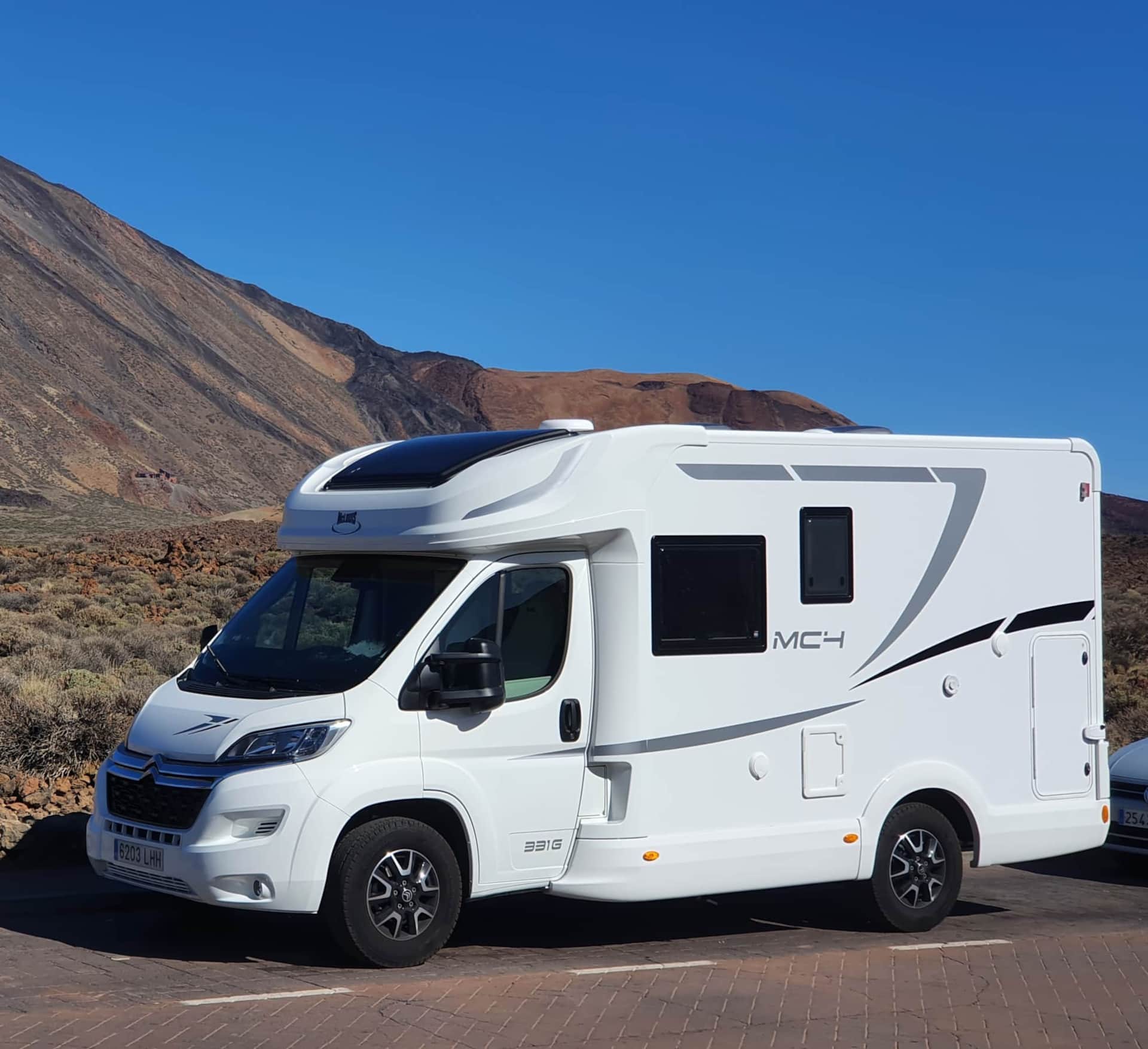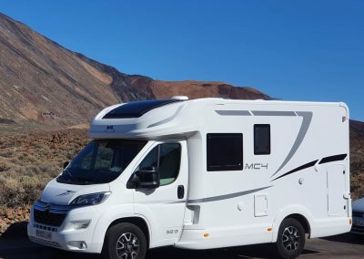 Ideal motorhome to travel around the Canary Islands. New 2020!!! Fully comprehensive insurance included. It is a very manageable motorhome. Its measurements are 5,99m long and as we can see it is profiled. Its height is 2,95m, 4 sleeping/travelling places. These measures are very similar to a camper van (GV) and without giving up the comforts of a motorhome. Very well equipped, TV, bathroom, large fridge 145L, freezer, bed linen, kitchenware, etc. ….. .